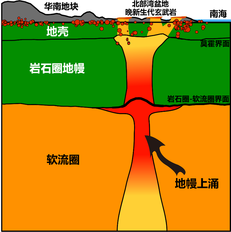 圖3 北部灣區(qū)域下方的地幔上涌示意圖。