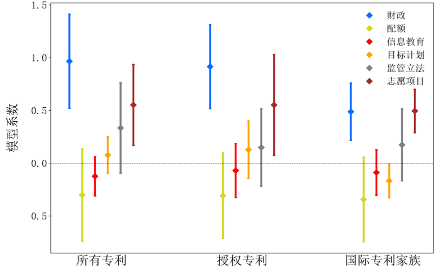 圖1 政策對不同質(zhì)量風(fēng)能創(chuàng)新影響的回歸結(jié)果