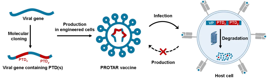PROTAR減毒活疫苗策略利用宿主細胞中的蛋白質降解機器“泛素-蛋白酶體系統”,操控病毒蛋白的穩定與降解,將病毒轉化成為減毒活疫苗。