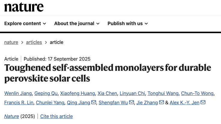 合作團隊開發出了一種普適性的SAM分子原位交聯構象強化策略,解決了SAM在高效率鈣鈦礦基光伏技術中的穩定性難題,對促進反式鈣鈦礦光伏技術和下一代鈣鈦礦基疊層光伏技術的商業化應用具有重要意義。