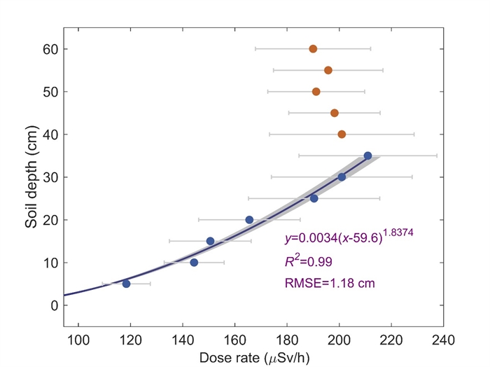 圖1. 伽馬輻射劑量率與土壤厚度的關系