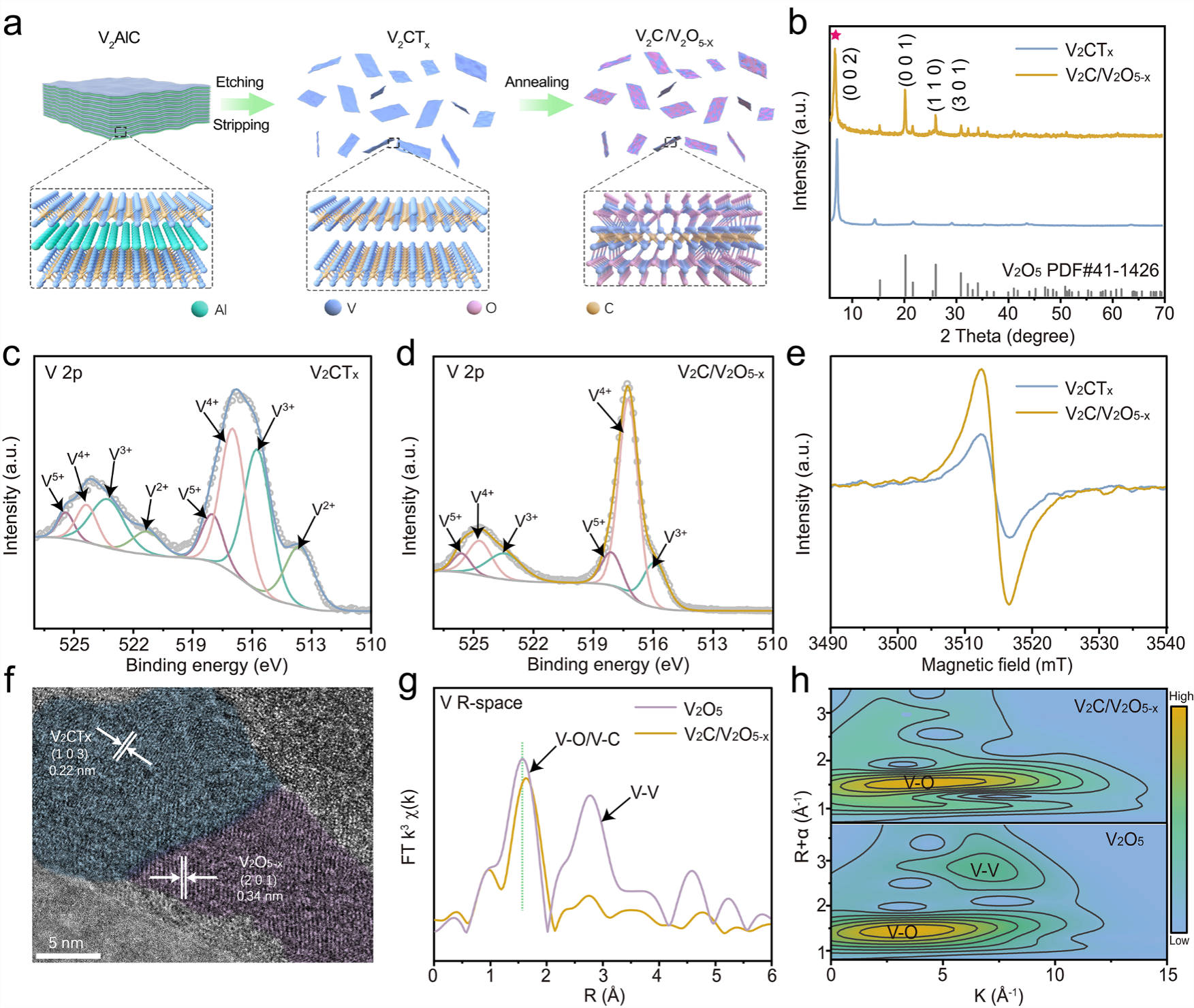 圖2 | V2C/V2O5-x異質(zhì)結(jié)構(gòu)制備示意圖和結(jié)構(gòu)表征