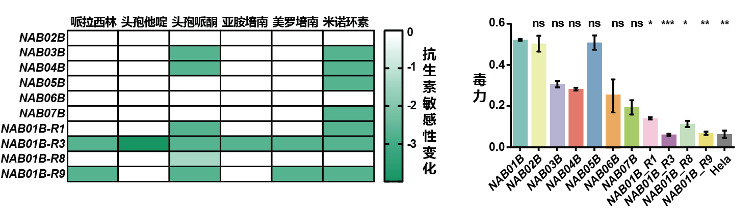 圖3:噬菌體抗性株對抗生素再敏感、毒力下降