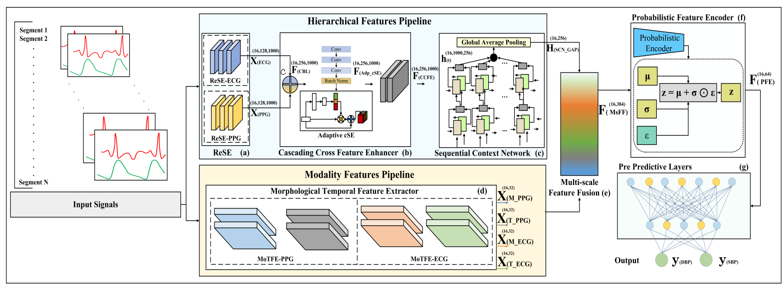 血壓是反映心血管功能和血管阻力的關鍵生理參數,也是評估整體心血管疾病風險的核心指標。它與代謝健康狀況密切相關,是代謝綜合征的診斷標準之一。在針對高血壓或代謝綜合征患者進行營養干預時,血壓的動態監測是評估干預效果和進行個體化飲食調整的重要依據。無袖帶血壓監測技術具有連續、非侵入性等優點,為實現血壓的動態監測提供了新手段,其臨床與公共衛生意義日益凸顯。然而,現有技術仍受限于信號處理復雜、特征表達不足以及準確度較低等關鍵瓶頸,致使其在真實場景中的規模化應用仍面臨嚴峻挑戰。
