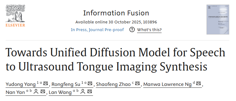 近日,中國科學院深圳先進技術研究院環繞智能與多模態研究室提出從語音到舌超聲生成的統一擴散模型框架,能夠根據輸入的未知語音信號(例如健康或病理性語音),自適應地生成高保真度的舌體超聲數據,這項研究為解決言語障礙評估與康復中的相關技術難題提供了新路徑,相關研究已正式發表于國際期刊Information Fusion。