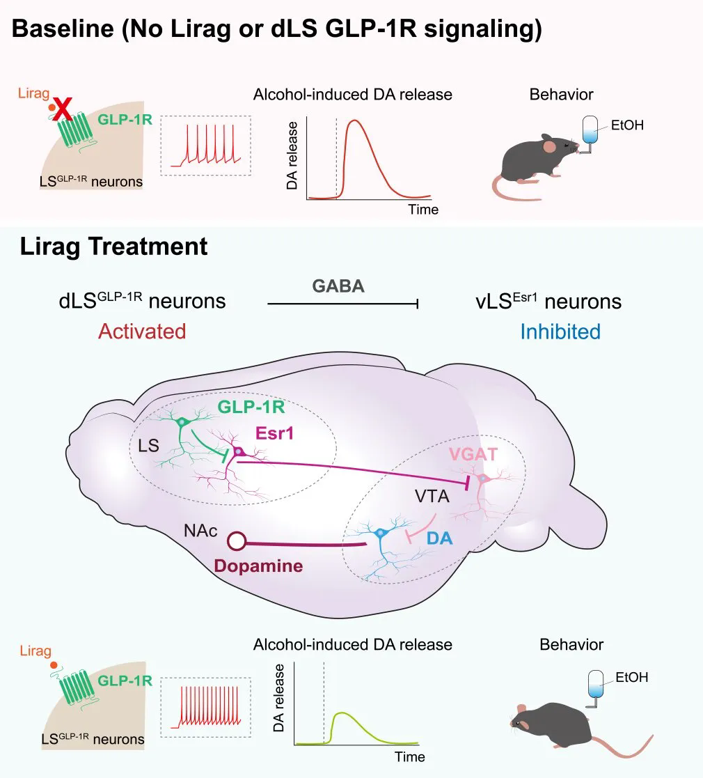 研究人員指出,該研究在基礎(chǔ)研究和臨床轉(zhuǎn)化層面均具有重要意義。在基礎(chǔ)研究方面,揭示了大腦中的外側(cè)隔核在代謝信號(hào)與高強(qiáng)化獎(jiǎng)賞行為整合中的關(guān)鍵作用,為理解大腦如何調(diào)控獎(jiǎng)賞驅(qū)動(dòng)力提供了新的視角。在臨床應(yīng)用層面,該研究闡明了GLP-1類藥物抑制飲酒行為的神經(jīng)機(jī)制,為其在酒精使用障礙及其他成癮性疾病中的應(yīng)用提供了理論依據(jù),也為開(kāi)發(fā)靶向獎(jiǎng)賞環(huán)路的干預(yù)策略提供了新思路。