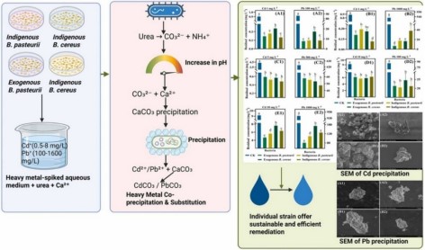 隨著工業化和農業活動的持續擴張,重金屬鎘和鉛對水體和土壤的污染已演變為一項嚴峻的全球性環境挑戰。這些有毒金屬不僅具有環境持久性和高生物毒性,更易通過食物鏈富集,嚴重威脅生態系統穩定與農產品安全。在眾多綠色、可持續的原位生物修復技術中,微生物誘導碳酸鹽沉淀技術(MICP)因其環境友好、成本相對較低且能實現長效穩定等優勢而備受關注。由于實際污染場地中鎘、鉛等重金屬往往同時存在,它們之間可能產生協同、拮抗或競爭抑制等復雜的交互作用,這些相互作用會深刻影響微生物的活性、礦化效率以及最終修復效果的穩定性。若忽視這一復雜情境,僅基于單一污染體系優化的技術在實際應用中難免會“水土不服”。因此,深入探索MICP技術在鎘-鉛復合污染條件下的作用效率與微觀機制,對于精準治理復雜污染場地具有至關重要的現實意義。該研究從粵北典型污染土壤中成功篩選出兩種本地礦化細菌——巴氏芽孢桿菌和蠟樣芽孢桿菌,并與商業菌株進行了系統性對比。研究結果表明,在低濃度污染條件下(鎘0.5-4.0 mg/L,鉛100-200 mg/L),這兩種本土菌株對鎘和鉛的固定化效率均超過了98%,表現極為高效。即使在較高濃度(如鎘8 mg/L)下,本土巴氏芽孢桿菌仍能保持96%的固化效率,展現出卓越的耐受性。在鎘鉛復合污染的環境中,金屬之間存在競爭抑制現象。鉛由于其更強的結合親和力,往往在固定化過程中占據主導地位。礦化細菌誘導形成了富含鎘或鉛的碳酸鹽礦物沉淀,這是固化重金屬的關鍵機制。從污染地本土篩選的菌株比外源商業菌株具有更強的環境適應性和重金屬固化能力,它們能更快地啟動礦化過程,形成更穩定的礦物結構,為原位生物修復提供了優越的“種子”資源。這項工作不僅從機理上深化了我們對微生物礦化過程的理解,更重要的是,它為實際修復重金屬污染的水體和土壤提供了一種高效、低成本且環境友好的解決方案。相關研究成果近期以“The Role of Mineralization Bacteria in the Immobilization of Cadmium and Lead in Aqueous Solutions“為題發表在國際環境領域權威期刊Journal of Hazardous Materials(《有害物質雜志》)(IF5-years=12.4)上。與此同時,科研團隊同步證實了從污染土壤提取的本土礦化菌對實際鎘鉛復合污染農田土壤具有高效的修復效果,此成果發表于中文核心期刊《生態與農村環境學報》上。中國科學院華南植物園博士后Ismail Khan和碩士研究員尚麗分別為第一作者,莊萍副研究員為通訊作者。該研究得到了國家自然科學基金和廣東省自然科學基金等項目的支持。論文鏈接:https://doi.org/10.1016/j.jhazmat.2025.140187https://doi.org/10.19741/j.issn.1673-4831.2025.0559圖1. 礦化菌通過生物礦化“捕獲”水中重金屬圖2. 本土礦化菌菌株的馴化過程和最佳培養條件篩選