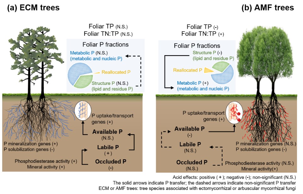 華南植物園揭示酸雨背景下南亞熱帶不同菌根樹(shù)種應(yīng)對(duì)磷限制的適應(yīng)策略