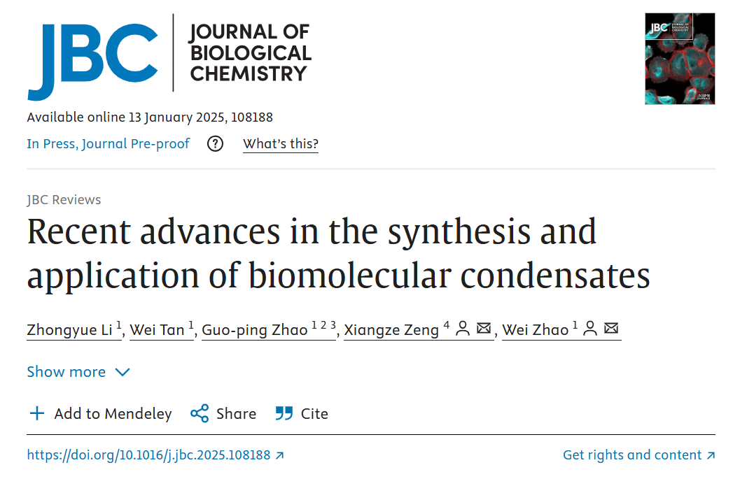 深圳先進(jìn)院 | 生物大分子凝聚物的合成與應(yīng)用研究進(jìn)展(Journal of Biological Chemistry)