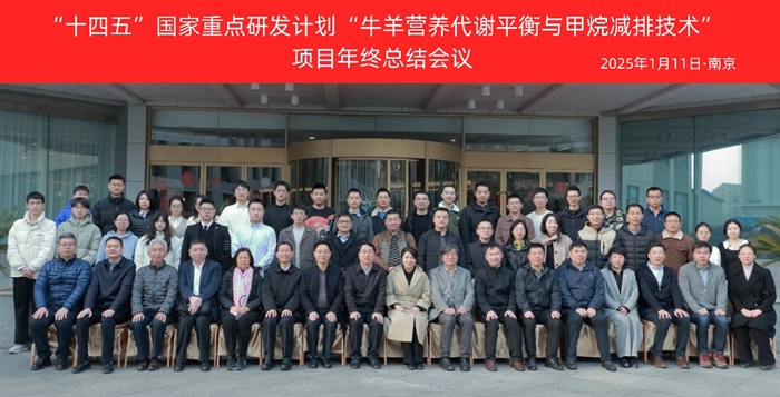 1月10日至13日,由中國科學院亞熱帶農業生態研究所王敏研究員主持的十四五國家重點研發計劃項目牛羊營養代謝平衡與甲烷減排技術2024年度總結會暨2025年度計劃會在南京農業大學順利召開。1月10日至13日,由中國科學院亞熱帶農業生態研究所王敏研究員主持的“十四五”國家重點研發計劃項目“牛羊營養代謝平衡與甲烷減排技術”2024年度總結會暨2025年度計劃會在南京農業大學順利召開。項目管理部門和會議承辦單位領導、專家組和項目組成員等70余人參加了會議。中國農村技術開發中心農業科技處專員楊甜、張志飛和蔣立,項目跟蹤專家西北農林科技大學姚軍虎教授和浙江大學劉建新教授,項目咨詢專家亞熱帶生態所印遇龍院士和譚支良研究員、四川農業大學陳代文教授、中國農業科學院北京畜牧獸醫研究所王加啟研究員、南京農業大學朱偉云教授、蘭州大學侯扶江教授出席了本次會議。項目負責人王敏研究員首先對標對表考核指標詳細介紹了項目的完成情況和取得的成果,并規劃了2025年需要完成的重點工作。課題負責人浙江大學王佳堃教授、亞熱帶生態所王敏研究員、南京農業大學成艷芬教授、中國農業大學曹志軍教授和吉林農業大學甄玉國教授分別針對各課題內容進行了詳細匯報。項目跟蹤與咨詢專家一致對項目和課題的整體實施情況表示滿意和認可,認為這是一支年輕、優秀、可靠的團隊,項目開展一年來總體進展快、成果多、亮點足,同時也提出了指導性建議。中國農村技術開發中心農業科技處楊甜專員指出,項目取得了非常顯著的成效,成果入選2024年度標志性成果,建議項目后期加強資源統籌和產業導向,促進科技創新與產業創新融合,強化能落地見效的標志性成果凝練,產出代表“十四五”畜禽專項的成果,爭取獨立支撐1項至2項成果入選最終重大成果清單。項目負責人王敏研究員作總結發言,對專家組提出的寶貴意見表示衷心感謝,并將協同各課題組做好后續研究規劃,進一步優化實施方案細節,總結凝練亮點成果,為攜手推動項目完成既定目標打下堅實基礎。參會人員合影