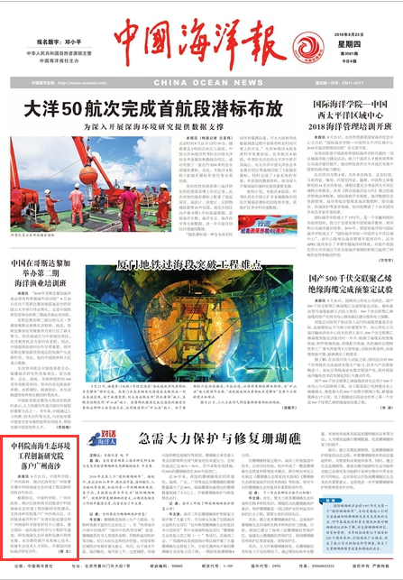 【中國海洋報】中科院南海生態(tài)環(huán)境工程創(chuàng)新研究院落戶廣州南沙