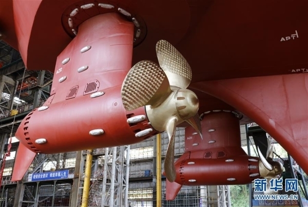 7月18日拍攝的“實驗6”號新型地球物理綜合科學考察船螺旋槳。新華社記者 黃國保 攝