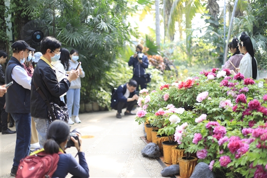 牡丹的自然花期本來是春天的4~5月,為了讓廣州市民特別是未能回家過年的父老鄉親們在春節期間觀賞到“花王”的風姿,華南植物園與洛陽縱橫園藝有限公司合作,提前2個多月,精挑細選了8000余株洛陽牡丹,不遠千里南下來到華南植物園,經過低溫休眠、溫室養護,同時利用先進的栽培技術,根據累計積溫進行花期調控,此刻的牡丹已露出富貴端莊、風姿卓絕的姿態,做好了春節與市民“會面”的準備。