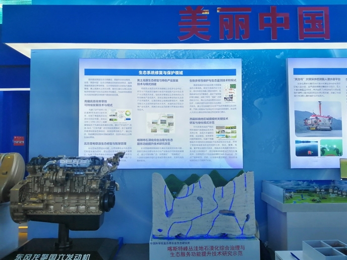 該參展成果位于社會發展展區的美麗中國板塊,展示了環江喀斯特站針對西南喀斯特地區石漠化與鄉村振興重大需求,創新研發的石漠化治理模式與生態衍生產業融合可持續發展模式,即構建土壤漏失生物-工程協同阻控及水源涵養技術、近自然群落植被高效恢復技術、土壤肥力提升技術、生態移民-特色產業培育技術等石漠化綜合治理技術體系,創建家畜健康養殖與高效安全營養調控技術、養殖廢棄物資源化利用技術等種-養結合生態農業技術體系,最終形成石漠化治理與生態衍生產業融合的、可持續和可復制推廣的“古周模式”和“肯福模式”。改成果引領了國際喀斯特生態修復領域發展,為生態安全屏障構筑及鄉村發展提供了強有力的科技支撐,入選聯合國糧農組織全球減貧最佳案例之一,支撐毛南族整體脫貧。
