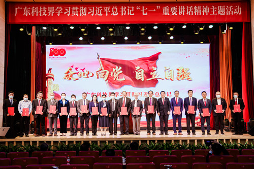 11月8日,由廣東省科協、省科技廳、省科學院、中科院廣州分院主辦的“眾心向黨 自立自強”廣東科技界學習貫徹習近平總書記“七一”重要講話精神主題活動在廣東科學館舉行。廣東省委常委、統戰部部長黃寧生出席主會場活動并講話。中科院廣州分院分黨組書記、院長陳廣浩等為獲獎者代表頒獎。
