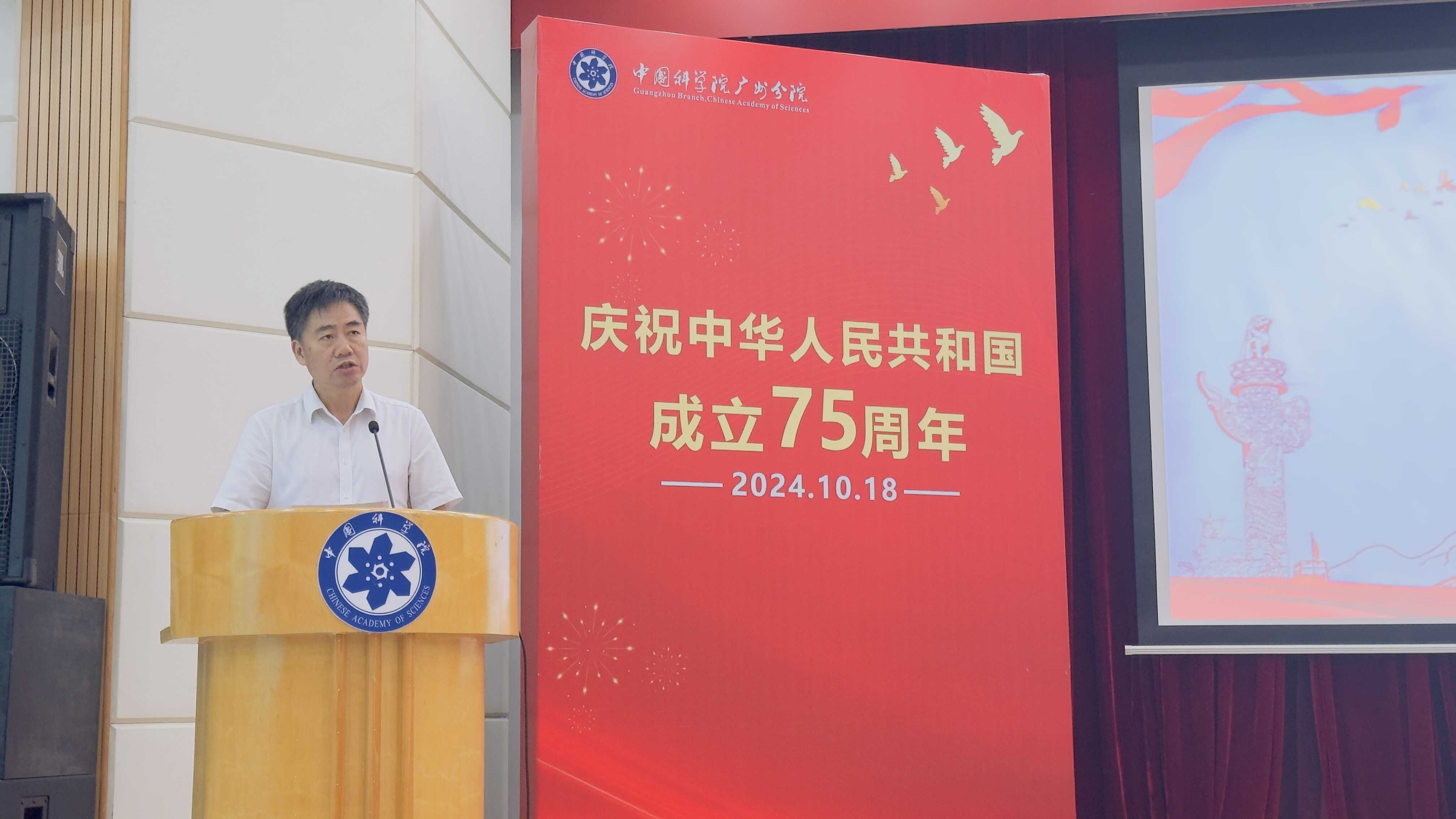 10月18日,中國(guó)科學(xué)院廣州分院隆重舉行“傳承科學(xué)家精神慶祝中華人民共和國(guó)成立75周年和中國(guó)科學(xué)院建院75周年”主題報(bào)告會(huì)。廣州分院分黨組書(shū)記、院長(zhǎng)陳廣浩出席會(huì)議并講話。