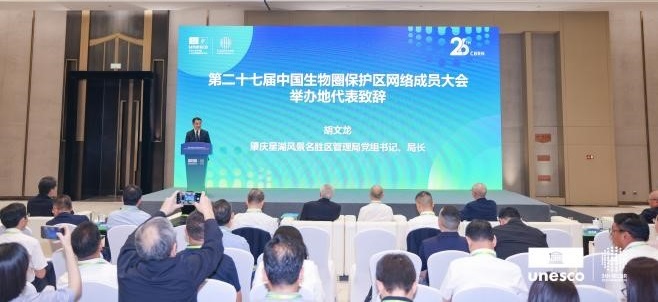 在第二十六屆中國生物圈保護區(qū)網(wǎng)絡年會的閉幕式上,會議宣布鼎湖山世界生物圈保護區(qū)成為2026年第二十七屆中國生物圈保護區(qū)網(wǎng)絡成員大會舉辦地。肇慶星湖風景名勝區(qū)管理局局長胡文龍作為舉辦地代表出席并致辭。2026年是鼎湖山保護區(qū)成立70周年,鼎湖山保護區(qū)始終堅持嚴苛守護與科學管理并重,森林植被持續(xù)優(yōu)化,物種記錄不斷豐富,已成為粵港澳大灣區(qū)重要的生物多樣性寶庫和生態(tài)安全屏障。