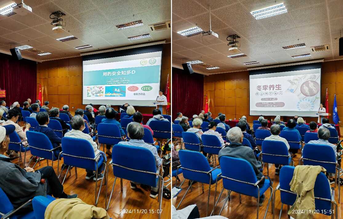 本次健康知識(shí)講座的主題為“安全用藥和中醫(yī)養(yǎng)生”。講座中,兩位醫(yī)生詳細(xì)介紹了各類口服制劑服藥的注意事項(xiàng)、老年人常用藥品的不良反應(yīng)和預(yù)防處理,以及冬季的養(yǎng)生要點(diǎn)、日常飲食、生活起居等。講座后,醫(yī)生與離退職工們積極互動(dòng),為大家答疑解惑,備受大家歡迎。