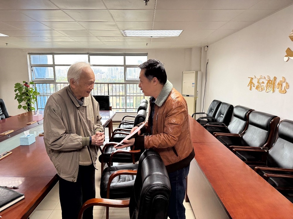 在座談交流中,丁一代表省直機關工委向趙煥庭致以新春祝福與親切問候,送去黨的關懷和溫暖,并對趙煥庭在89歲高齡下仍堅守工作崗位,扎實開展科學研究工作致敬。趙煥庭對省直機關工委的關心及新春祝福表示感謝,也為國家的高速發展感到振奮驕傲,他還表示在身體狀況允許的情況下未來將繼續為實現高水平科技自立自強貢獻力量。