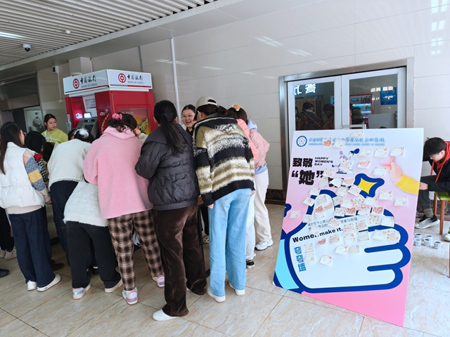 研究生公寓樓前,"致敬她力量"主題活動別開生面。晶瑩的玻璃珠在科研巧手中化作獨特手串,心愿墻上"祝福祖國""祝福GIBH"的寄語匯聚成奮進宣言。