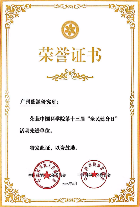 近日,中國科學院體協授予40家院屬單位中國科學院第十三屆“全民健身日”活動先進單位稱號,廣州能源所獲此榮譽。2024年是慶祝中華人民共和國和中國科學院建院75周年,廣州能源所高度重視,精心組織了系列活動。