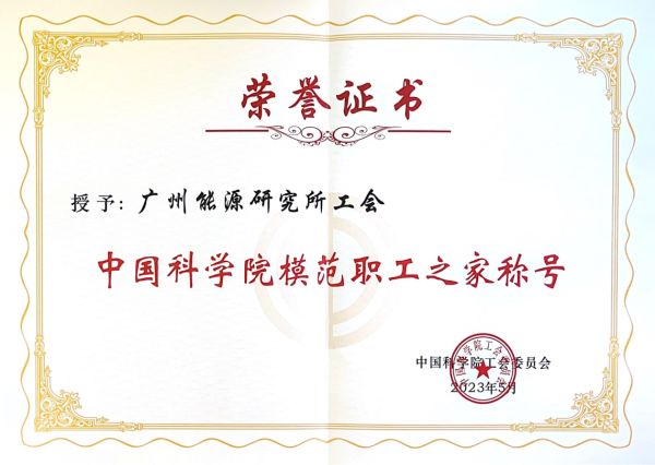 近日,廣州能源所工會(huì)獲評(píng)中國(guó)科學(xué)院模范職工之家,全院共20個(gè)工會(huì)集體獲此獎(jiǎng)項(xiàng)。