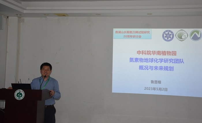 5月2-3日,鼎湖山氮沉降試驗研究20周年學術研討會在廣東肇慶鼎湖山國家級自然保護區舉行。來自中國科學院華南植物園等8家科研院所與高校單位的48位專家學者、博士后和研究生參會。開幕式由華南植物園氮素生物地球化學創新人才團隊負責人魯顯楷研究員主持,華南植物園副主任閆俊華研究員、鼎湖山國家級自然保護區管理局局長夏漢平研究員、華南植物園氮沉降試驗研究發起人莫江明研究員分別致辭,祝賀學術論壇召開。