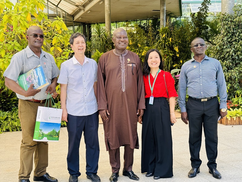 園主任任海接待了議長(zhǎng)一行,陪同參觀了華南植物園植物遷地保護(hù)園區(qū),還介紹了龍洞琪林、溫室群等展示區(qū)。任海特別向薩蘭吉議長(zhǎng)介紹了華南植物園種植的無(wú)憂樹、佛肚竹、菩提樹、降香等寓意美好的植物,以表達(dá)對(duì)議長(zhǎng)一行的誠(chéng)摯歡迎及對(duì)中非兩國(guó)合作的期待。薩蘭吉議長(zhǎng)在“2023中非創(chuàng)新合作與發(fā)展論壇暨湖北國(guó)際技術(shù)交流會(huì)”在中國(guó)召開之際訪問(wèn)華南植物園,為搭建兩國(guó)科技合作橋梁打下良好基礎(chǔ)。