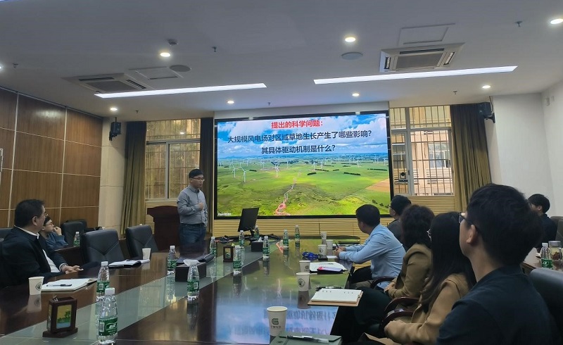 第三位報告人是我園新引進的海歸人才武東海研究員。武博士的報告展示了優(yōu)秀海歸青年科學家的風采,他以研究風電場對植被生長的影響為例,講述科學研究的基本邏輯。結合自己的研究經(jīng)歷,從如何發(fā)現(xiàn)并提出一個科學問題,到對如何對提出的科學問題進行深入探索,再到如何解決科學問題并講出一個好故事進行了系統(tǒng)的闡述。隨后對在全球風能產(chǎn)業(yè)快速發(fā)展過程中,如何從科學的角度去探究其對生態(tài)系統(tǒng)功能的負面影響,進而進一步推動可再生能源的發(fā)展進行了深入的探討。最后,作為新成立的課題組,武博士向大家介紹了自己未來的研究方向?qū)⑷绾闻c國家重大需求相結合,隨后與現(xiàn)場聽眾進行了深入交流和討論。