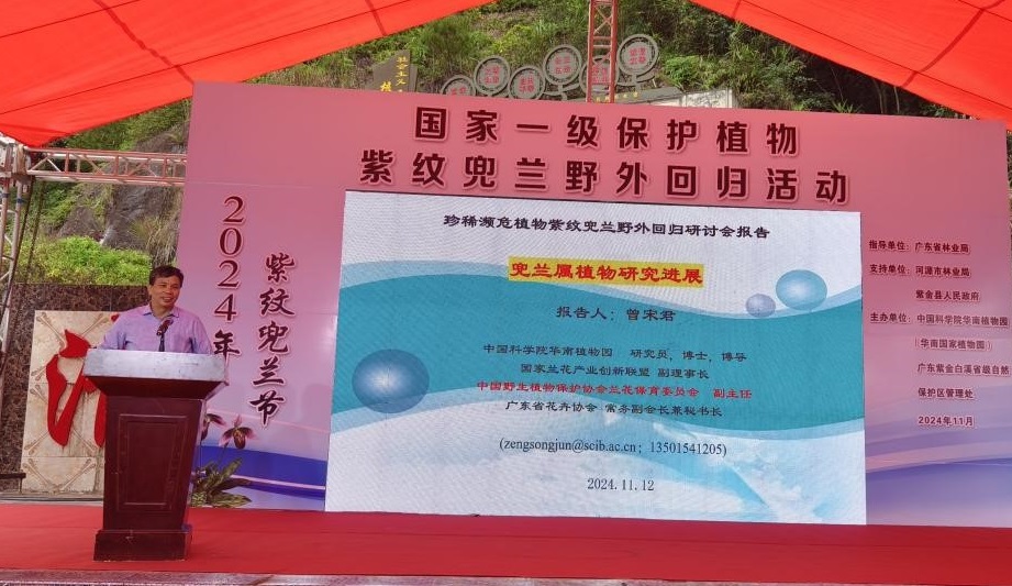 11月14日,國(guó)家一級(jí)保護(hù)植物紫紋兜蘭野外回歸活動(dòng)在廣東紫金白溪省級(jí)自然保護(hù)區(qū)順利舉行。活動(dòng)由中國(guó)科學(xué)院華南植物園和廣東紫金白溪省級(jí)自然保護(hù)區(qū)管理處共同主辦,廣東省林業(yè)局為指導(dǎo)單位,紫金縣人民政府為支持單位,來(lái)自各單位的50余位代表應(yīng)邀參加會(huì)議。