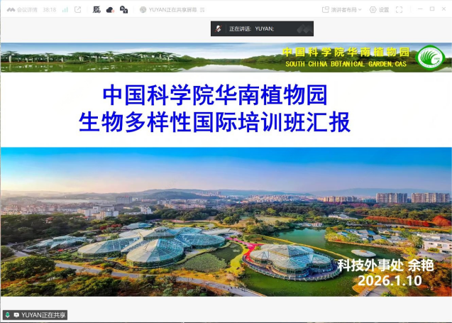 隨后,園科技外事處副處長余艷分享了中國在生物多樣性國際合作與能力建設方面的豐碩成果。自2009年起,華南植物園連續主辦六屆國際培訓班,融合理論講授、實驗操作、野外考察、實踐演練與文化體驗于一體,為發展中國家學員賦能。2026年,培訓將聚焦全球熱點地區生物多樣性保護計劃,面向“一帶一路”及拉丁美地區,致力于培養貫通理論與行動的國際化人才。