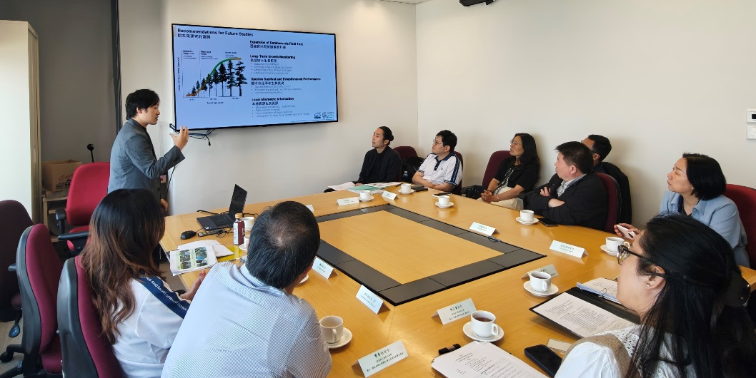 訪問期間,華南植物園代表團還應(yīng)邀參觀了香港花卉展,實地調(diào)研河套地區(qū)、朗原自然生態(tài)公園等區(qū)域用地可持續(xù)發(fā)展,與土木工程拓展署等單位進行技術(shù)交流,代表團張磊博士分享了《基于自然的森林植被恢復(fù)與碳匯策略》的報告。閆俊華主任一行還應(yīng)邀到香港沙田針山參加植樹活動并與香港大學(xué)的學(xué)生進行交流。