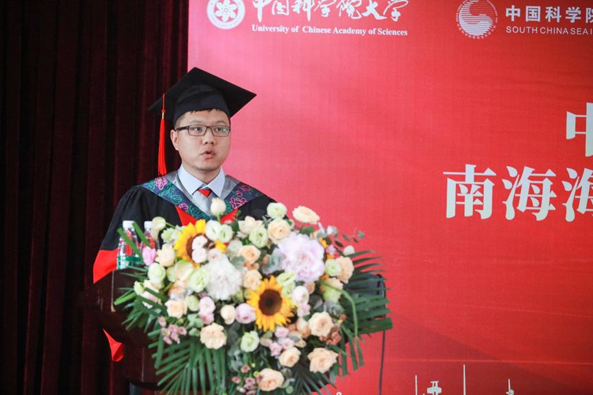 老科學家代表趙煥庭為畢業生送上畢業寄語。他從自身科研經歷談到家國情懷,鼓勵畢業生在未來的崗位上取得更加熠熠閃耀的業績;導師代表曾麗麗研究員為畢業生送上臨別祝福,希望大家時刻牢記“銳意進取、攻堅克難、精誠團結、科學創新”的南海精神,在新的人生征程書寫光榮與夢想;畢業生代表李爽發言,他回顧自己的研究生生涯,充滿奮斗、努力和幸福的回憶,感恩導師的培養,今后將繼續秉承科學院精神,勇于創新,拼搏進取,為國家富強貢獻自己的一份力量!