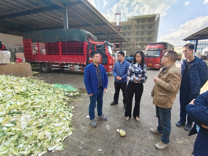 3月17日,印遇龍院士團隊前往昆明市陸良縣考察了當地蔬菜種植情況及尾菜處理利用情況,經調研發現,目前尾菜主要用于漚肥和沼氣發酵,少部分被用于制作菌菇培養基,總體利用率較低,尾菜積壓嚴重,不但增加了環保壓力,同時也造成了資源浪費。對此,譚碧娥強調,通過將尾菜飼用化可以解決上述問題,增加經濟效益,且有利于當地農業的循環可持續發展。