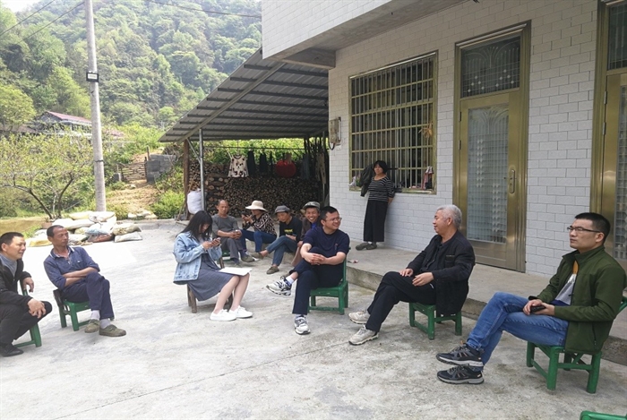 與鄉鎮領導交流(傅心贛 攝)