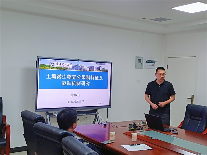方臨川教授作了題為“土壤微生物養(yǎng)分限制特征及驅(qū)動機制研究”的學(xué)術(shù)報告。他從土壤微生物養(yǎng)分限制模式,微生物群落對養(yǎng)分限制的響應(yīng)過程,以及微生物養(yǎng)分限制預(yù)測模型的構(gòu)建等展開系統(tǒng)講解。進一步提出了未來可以通過建立酶計量與微生物代謝組、轉(zhuǎn)錄組和蛋白組學(xué)間聯(lián)系,結(jié)合原位酶譜技術(shù)提高酶活性測定準(zhǔn)確度等先進技術(shù)提高參數(shù)精度,再加強對時空尺度轉(zhuǎn)換的研究。