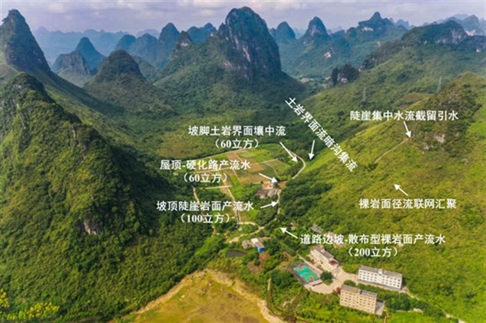 圖2 喀斯特坡地多途徑產(chǎn)流水聯(lián)合集蓄技術(shù)示范點-全貌-廣西環(huán)江縣木連屯