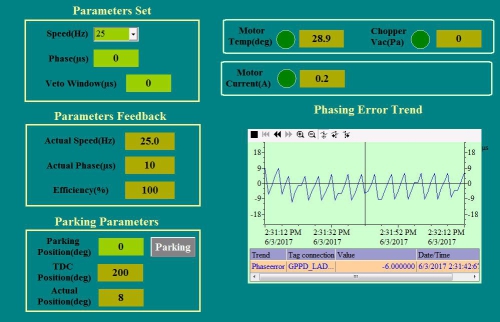 從2017年3月起,科研人員進行中子斬波器的現場調試工作,經過精心調試,所有斬波器的相位控制精度也達到了設計指標,即實現了與加速器觸發T0定時信號同步的斬波功能。長期運轉測試階段中子斬波器控制系統工作穩定,相位控制精度在設計指標范圍內。在中子斬波器機械安裝和控制調試過程中,為保證設備安裝和調試能夠按進度完成,中子光學系統人員經常放棄周末休息時間,搶抓進度。