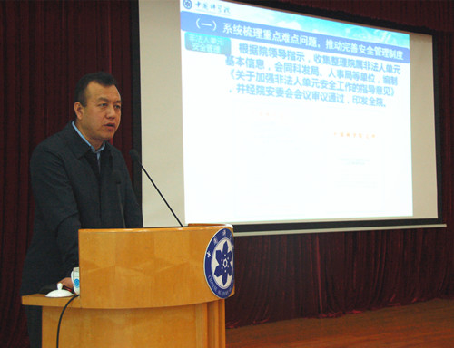 中科院辦公廳副主任、院安委辦主任高春東結(jié)合學(xué)習(xí)貫徹黨的十九大精神、落實(shí)總體國家安全觀作了專題報(bào)告。報(bào)告學(xué)習(xí)傳達(dá)了黨的十九大精神和習(xí)近平總書記、李克強(qiáng)總理對(duì)做好安全工作的系列重要指示,以及中科院白春禮院長(zhǎng)、相里斌副院長(zhǎng)、鄧麥村秘書長(zhǎng)對(duì)確保全院安全穩(wěn)定的工作要求。報(bào)告提出,要認(rèn)真學(xué)習(xí)貫徹黨的十九大精神,以習(xí)近平新時(shí)代中國特色社會(huì)主義思想統(tǒng)領(lǐng)中科院安全工作;要認(rèn)真落實(shí)總體國家安全觀,充分認(rèn)識(shí)安全工作在中科院全局工作中的重要性;要按照“建機(jī)制、帶隊(duì)伍、抓重點(diǎn)、補(bǔ)短板”的總體工作思路,推動(dòng)全院安全管理水平不斷提升;要堅(jiān)持“認(rèn)真、落實(shí)”要求,扎實(shí)完成好各項(xiàng)安全工作任務(wù)。同時(shí),他代表院安委辦對(duì)安全管理干部提出四點(diǎn)建議:一要落實(shí)安全責(zé)任制。要按照“黨政同責(zé)、一崗雙責(zé)、失職追責(zé)”、“管業(yè)務(wù)必須管安全”等工作原則,認(rèn)真督促落實(shí)本單位各級(jí)安全責(zé)任。二要完善安全應(yīng)急預(yù)案。要增強(qiáng)憂患意識(shí),加強(qiáng)風(fēng)險(xiǎn)評(píng)估,認(rèn)真梳理本單位生產(chǎn)經(jīng)營(yíng)和周邊社會(huì)環(huán)境中存在的風(fēng)險(xiǎn)隱患和不安定因素,制定完善相應(yīng)應(yīng)急預(yù)案,并經(jīng)常開展應(yīng)急演練。三要加強(qiáng)安全教育培訓(xùn)。特別要注重加強(qiáng)對(duì)新入職員工、學(xué)生和臨時(shí)聘用人員的安全教育。要多措并舉,采取形式多樣的方法手段,加強(qiáng)對(duì)安全生產(chǎn)知識(shí)技能的宣傳和培訓(xùn),努力營(yíng)造良好的安全文化氛圍。四要注重提高公文水平。安全管理干部不但工作要干得好,還要寫的好。要加強(qiáng)公文寫作方法和技能的學(xué)習(xí),勤寫多練,不斷提高公文水平,充分展現(xiàn)工作能力。