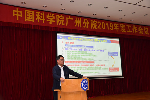 本次會議的主題是:深入學習貫徹黨的十九大和十九屆二中、三中全會精神,貫徹落實中科院2019年度工作會議精神和工作部署,圍繞“三個面向”、瞄準“三重大”產出,加快推進“率先行動”計劃實施,深入推動廣州分院系統單位參與粵港澳大灣區國際科創中心建設各項工作。