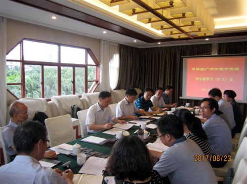 8月23日,中國科學院廣州分院分黨組召開2017年第三季度中心組學習擴大會,專題學習貫徹習近平總書記7月26日在省部級主要領導干部專題研討班上的重要講話,以及中科院院長白春禮8月15日在院2017年夏季黨組擴大會精神傳達會上的講話精神。廣州分院分黨組成員出席會議,分院機關各處(室)負責人列席會議。會議由廣州分院分黨組書記、中心組組長陳廣浩主持。