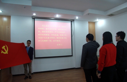 “我志愿加入中國(guó)共產(chǎn)黨,擁護(hù)黨的綱領(lǐng),遵守黨的章程,履行黨員義務(wù),執(zhí)行黨的決定,嚴(yán)守黨的紀(jì)律,保守黨的秘密,對(duì)黨忠誠(chéng),積極工作,為共產(chǎn)主義奮斗終身,隨時(shí)準(zhǔn)備為黨和人民犧牲一切,永不叛黨。”在廣州分院機(jī)關(guān)黨委書記周傳忠的帶領(lǐng)下,今年剛加入中國(guó)共產(chǎn)黨的兩位預(yù)備黨員董鸝和張正雍同志,面對(duì)鮮紅的黨旗,莊嚴(yán)地舉起右手,宣讀入黨誓詞。入黨宣誓是一次思想的洗禮、靈魂的升華。鏗鏘有力、擲地有聲的誓言表達(dá)了新黨員堅(jiān)定的理想信念和對(duì)黨的真摯情感。