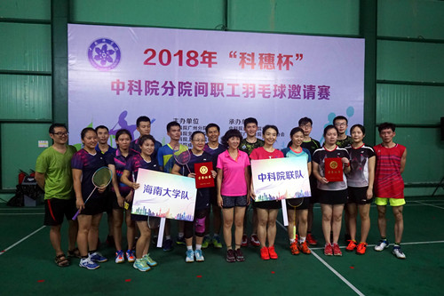 11月3日,2018年“科穗杯”中科院分院間職工羽毛球邀請賽在海口市舉行。比賽由中科院廣州分院體協、廣州分院羽毛球協會承辦,廣州分院海南辦事處協辦,來自中科院北京分院、上海分院、廣州分院、成都分院、合肥研究院5支隊伍近60名運動會和教練員參加了比賽。