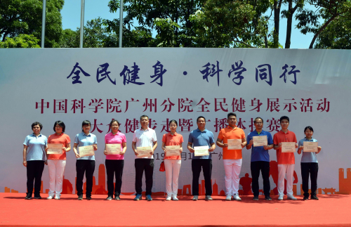 經過激烈角逐,綜合健步走和廣播體操成績,廣州晶體公司獲得“全民健身 科學同行”廣州分院全民健身展示活動金獎,廣州地化所、南海海洋所獲得銀獎,廣州電子公司、廣州生物院、中科檢測公司獲得銅獎。華南植物園、廣州晶體公司獲得優秀組織獎,其余參賽單位獲得團結奮進獎。活動現場還以抽簽的形式抽取了10個“健步明星獎”。