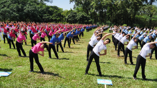 大眾健步走完成后,第九套廣播體操比賽緊接開展。根據參賽人數,12個基層工會分9批進行。在短短4分鐘的音樂節奏中,參賽隊員精神飽滿、身姿矯健,整齊規范、干脆有力的技術動作充分展示了廣州分院職工群眾朝氣蓬勃、團結奮進的精神風采。最后,全部參賽隊員集體上場,進行了一次場面宏大的廣播體操集體展示。