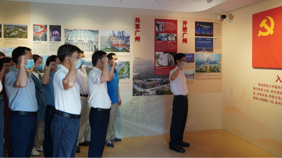 黨員們跟隨講解員的指引,通過一幅幅圖片、一件件展品的介紹,仿佛跨越時空,見證了廣州在建黨百年中的擔當:從1921年的黃浦浪潮席卷全國,到1924年大革命浪潮潮起珠江;從1978年改革大潮在珠江之畔拉開序幕,到2012年廣州走進新時代逐潮而上。在參觀結束前,張世專帶領全體黨員面向莊嚴的黨旗,重溫入黨誓詞。