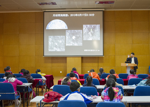 依托于廣州地化所雄厚科研實力的廣東省唯一的一家以普及地球科學和資源環(huán)境保護為主的科普基地,如今已成為一處青少年行走廣州不可錯過的科教融合游覽勝地。走進科普基地標本陳列館,900余種珠寶玉石、礦物、巖石、礦石、古生物化石標本……如此豐富的藏品讓同學們大開眼界。科普志愿者為同學們詳細介紹了人類賴以生存的地球上可開發(fā)的有用資源,以及各種礦產(chǎn)資源在我國國防、工業(yè)、農(nóng)業(yè)、化工、建筑材料等行業(yè)發(fā)揮的重要作用。通過對各種巖石、礦物、古生物化石標本的認識、礦產(chǎn)資源分布以及形成與演化的科普知識講解,讓孩子們受益匪淺。為了讓同學們進一步加深對地球科學的認識,陳鳴研究員專門作了“地球上的隕石坑”科普報告。他采用講故事、圖片展示、精彩例案和提問互動等多種教學方式,用淺顯易懂的語言介紹了星球撞擊遺跡的基本概念,重點講述了星球撞擊發(fā)生在地球上的故事。