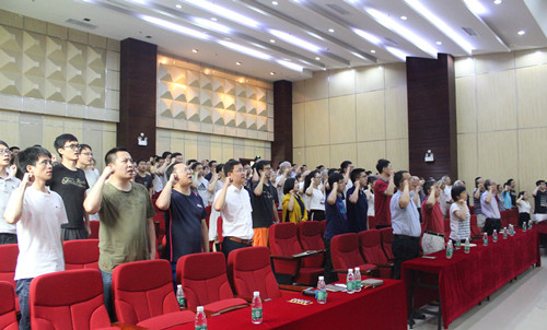 會上,與會全體黨員面向黨旗,舉起右手、握拳過肩,莊嚴宣誓,重溫入黨誓詞,不忘入黨初心,牢記歷史使命,表達了為黨的事業奮斗終身的決心。
