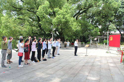 在廣州起義烈士陵園,所黨委書記、副所長何宏平帶領黨員干部重溫入黨誓詞,牢記作為一名共產黨員應具有的責任感和使命感。參加活動的黨員干部認真聆聽講解員講述那段關于革命先烈為解國家危難、救人民于水火的崢嶸歲月。該陵園建于1954年,旨在紀念1927年12月11日在中國共產黨領導的廣州起義中犧牲的烈士,是廣州市首批愛國主義教育基地之一。