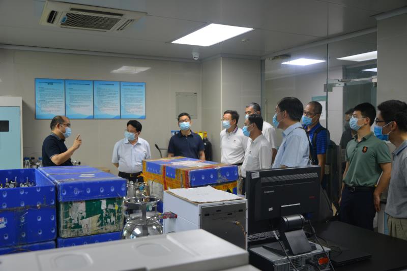 鄭振濤一行參觀了有機地球化學(xué)國家重點實驗室大型室內(nèi)煙霧模擬艙和14C專用加速器質(zhì)譜儀實驗室等科研平臺。